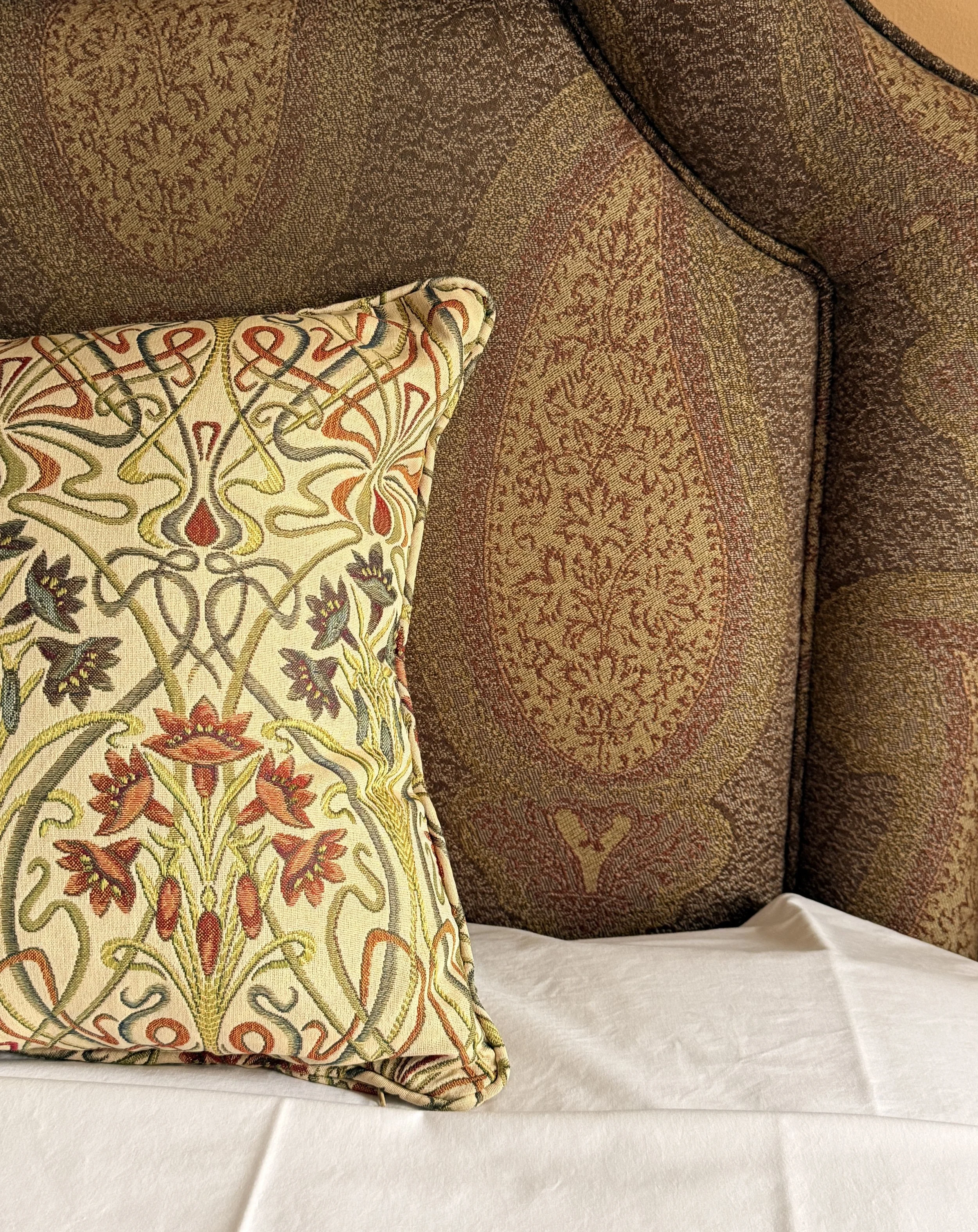 In 1914, the New Inn relocated across the street and village matriarch Christine Hamlyn seized the opportunity to embrace the Arts and Crafts movement of the day. A century later, Ian and Theresa have drawn upon those same inspirations to furnish their bedrooms and public rooms - think handcrafted wooden details, William Morris wallpaper, richly patterned textiles, and a sprinkling of quirky antique finds.